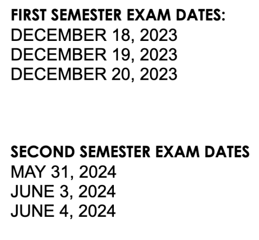 Fall 2023 Semester Exam Schedule and Exemption Info