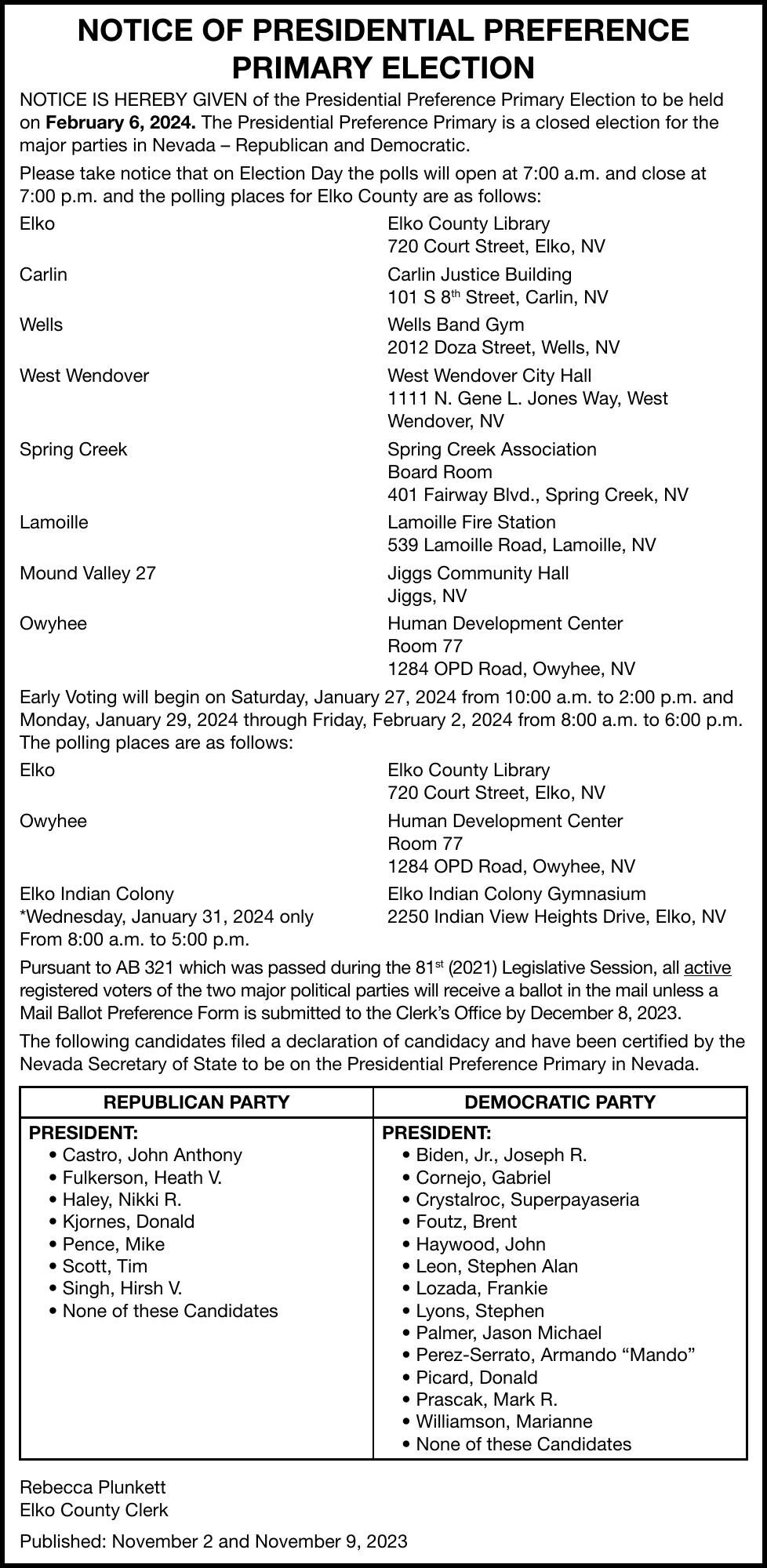 ELKO COUNTY CLERK Ad from 2023 11 02
